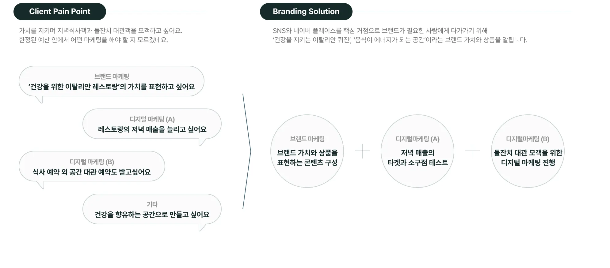 강남 세곡동에 위치한 ‘웰니스 이탈리안 퀴진’의 브랜드 가치인 ‘건강의 가치’을 알리고